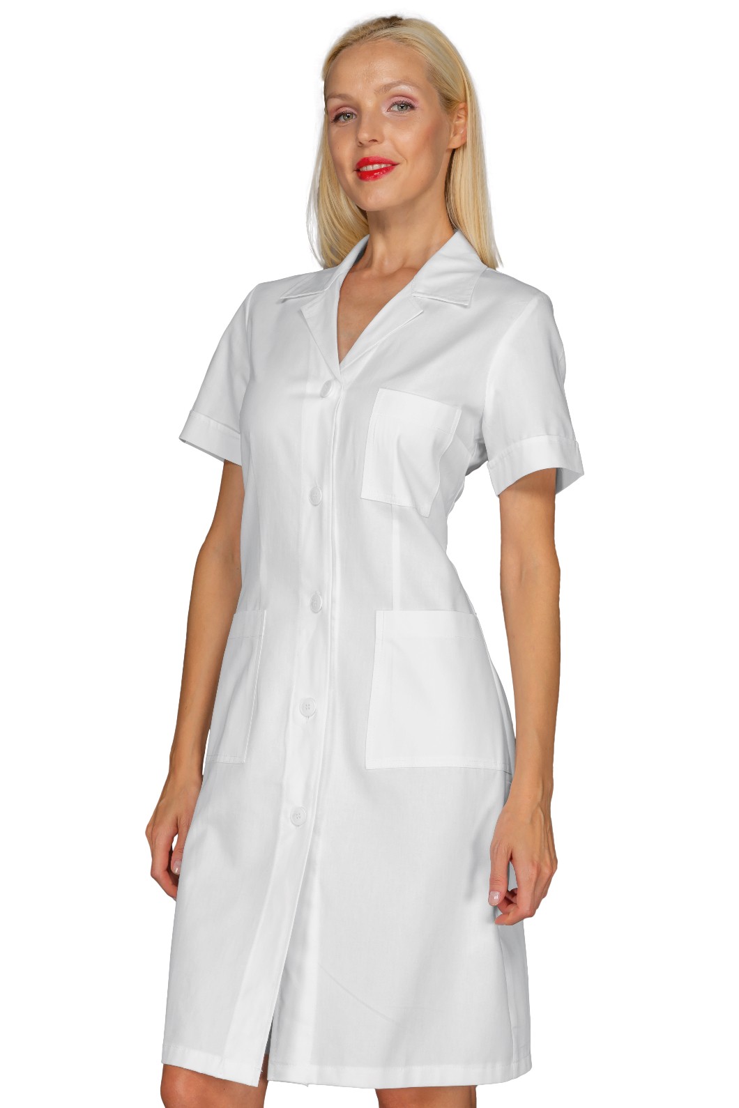 Camice da donna a mezza manica bianco. Per settore medicale, estetico, sanitario, farmacista e alimentare. Ideale come divisa da lavoro per medico infermiere o divisa da lavoro per aziende di servizi.