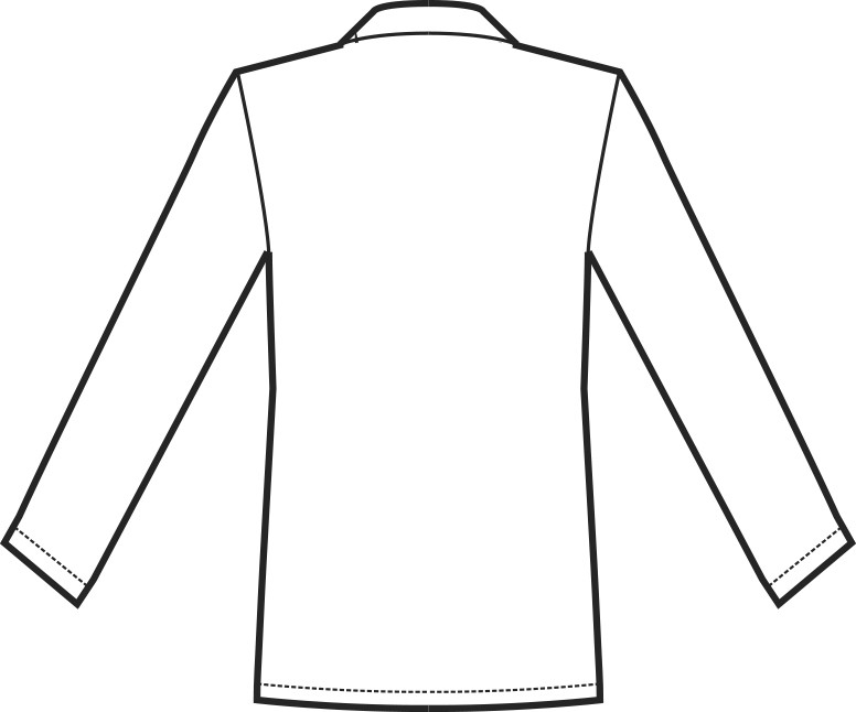 Linea asciutta molto corta e moderna, abbottonatura centrale, con bottoni a pressione antipanico ad apertura rapida.