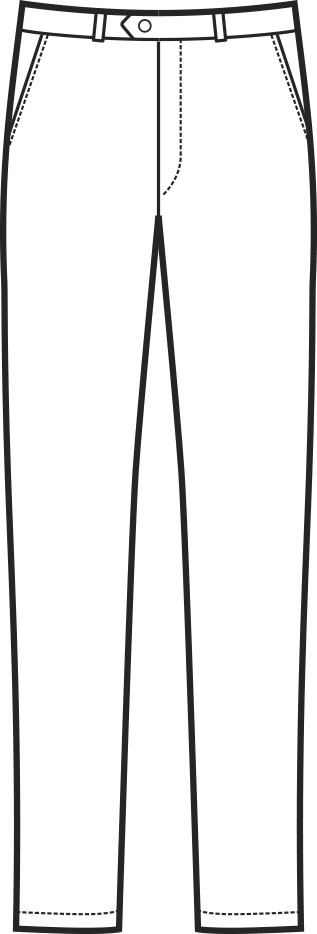 Pantalone da uomo chiusura zip con bottone, 2 tasche davanti e una posteriore, inclinate lateralmente alla francese.