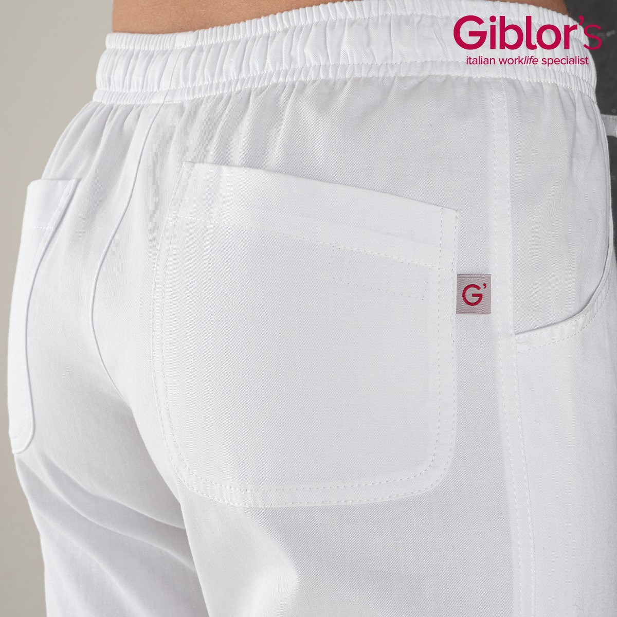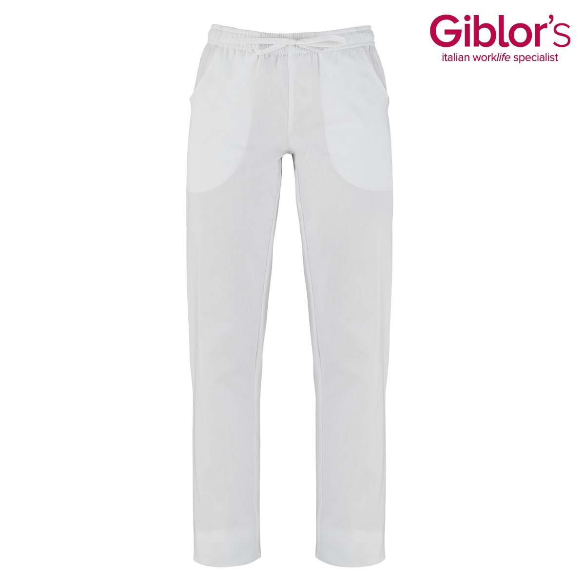 Pantalone CAMERON Q2P00240 , unisex bianco con coulisse in vita e elastico, due ampie tasche davanti e due dietro.