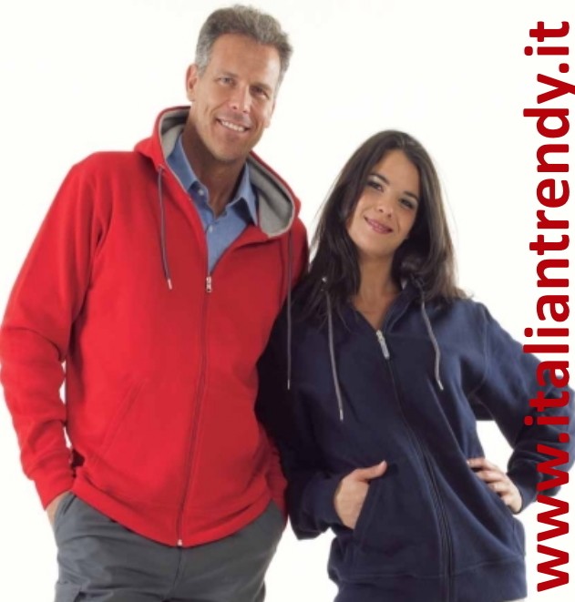 Splendida e comoda felpa di colore Blu Scuro rossa nera o grigia. Con allacciatura centrale, con una zip in plastica.
