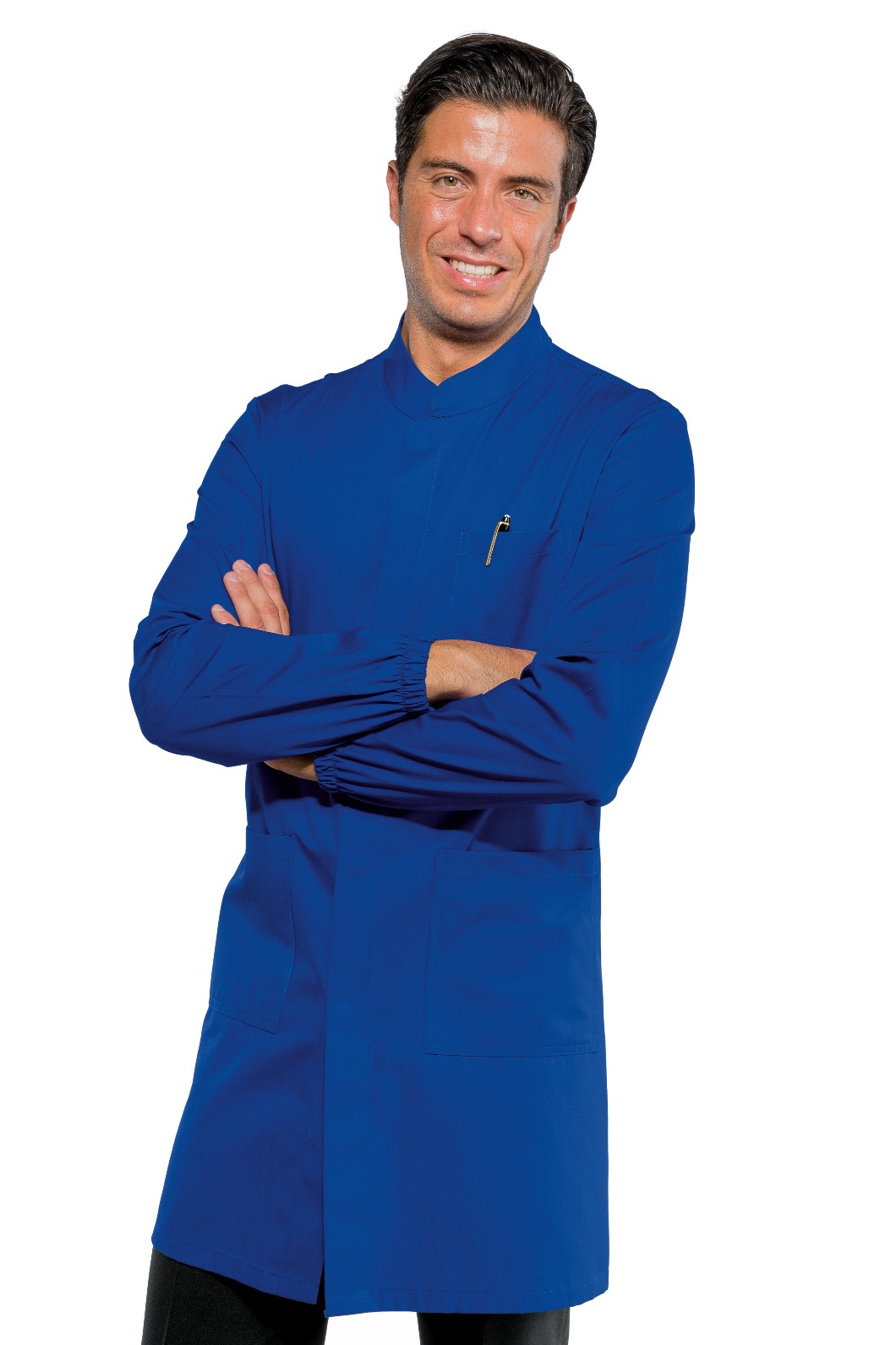 Articolo: Dover Camice dalla linea corta e slim con colletto alla coreana maniche con al polso un morbido elastico, ottimo per coprire totalmente gli abiti personali, in misto cotone. Brand Isacco