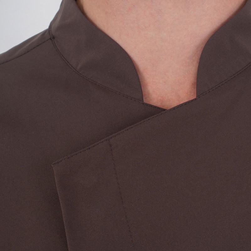 Disponibile nei colori Blu, Verde Militare, Grigio Medio e Marrone, è la scelta ideale per chi desidera un look professionale e moderno in cucina, ristorante o catering.