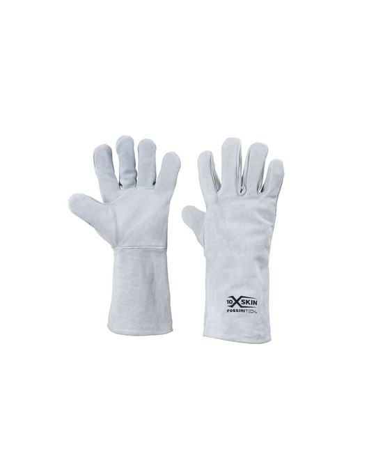 Guanto completamente in crosta con felpatura interna, lunghezza totale 35 cm, resistente al taglio, all’abrasione e allo strappo. Taglia 10.