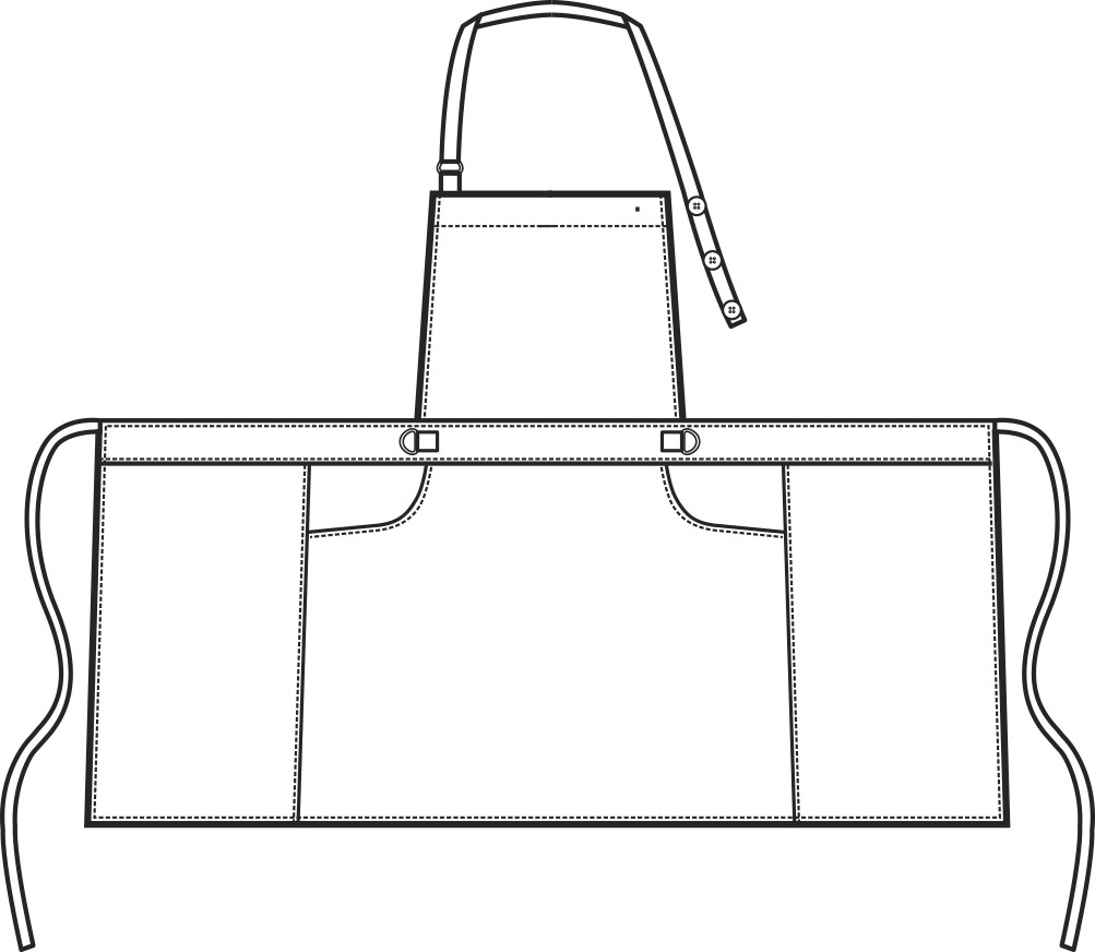 Grembiule con pettorina, da lavoro, realizzato in un tessuto estremamente leggero fresco e traspirante, che preserva la fantasia ed i colori anche dopo innumerevoli lavaggi.