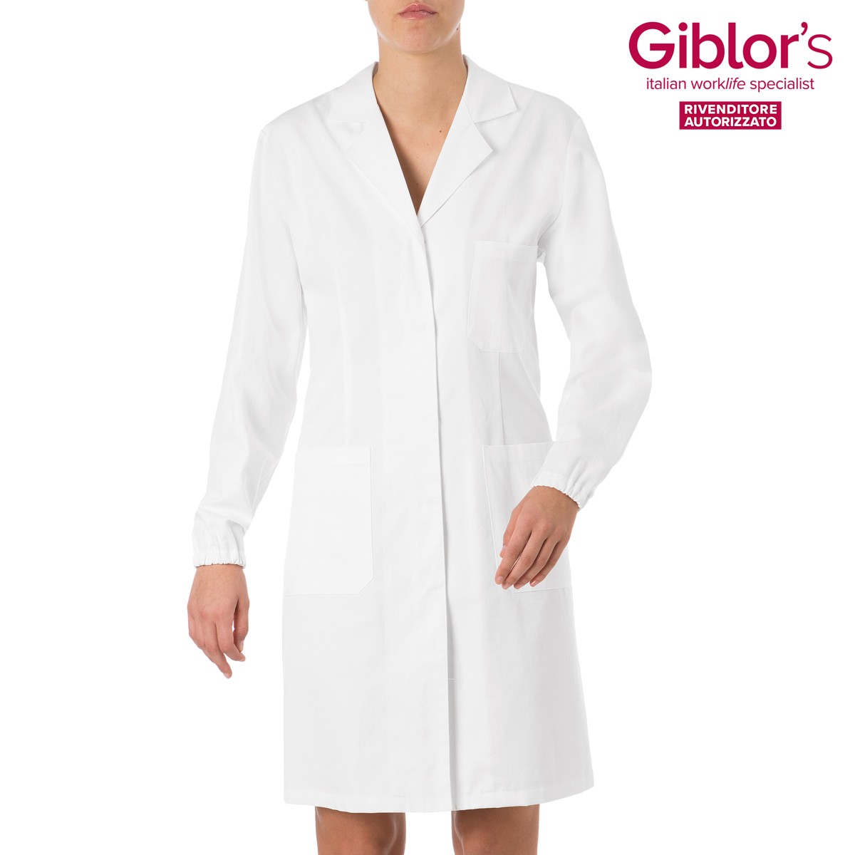 Camice Bianco da Donna lunghezza media in Puro Cotone con polsini elastici, articolo: Janeta 16P03R835 Giblor’S Linea Top
