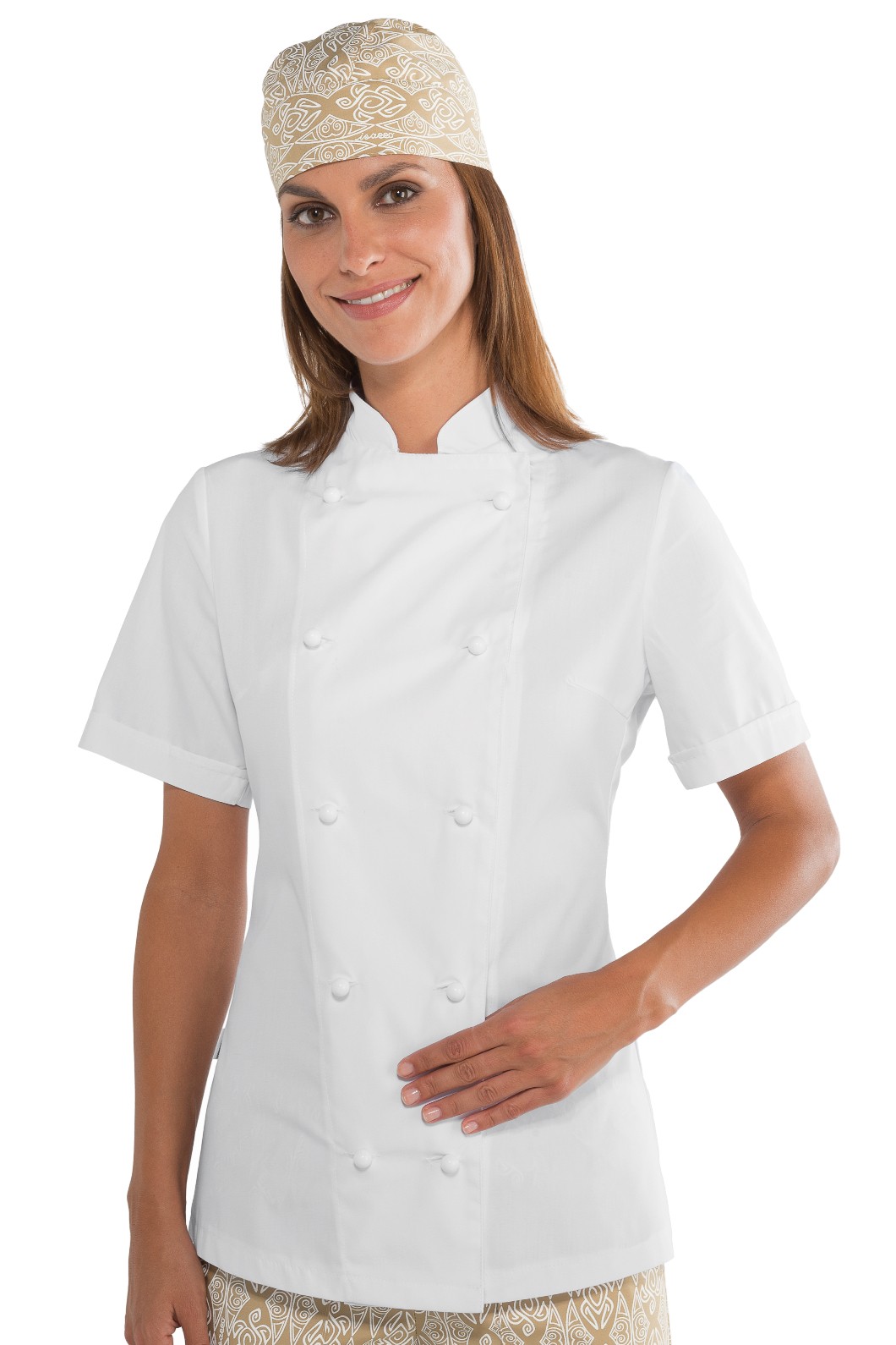Giacca Cuoco Donna Chef Lady Extra Light Bianca a Manica Lunga o corta. Casacca professionale femminile bianca a doppio petto in tessuto leggerissimo. Codice: 057530