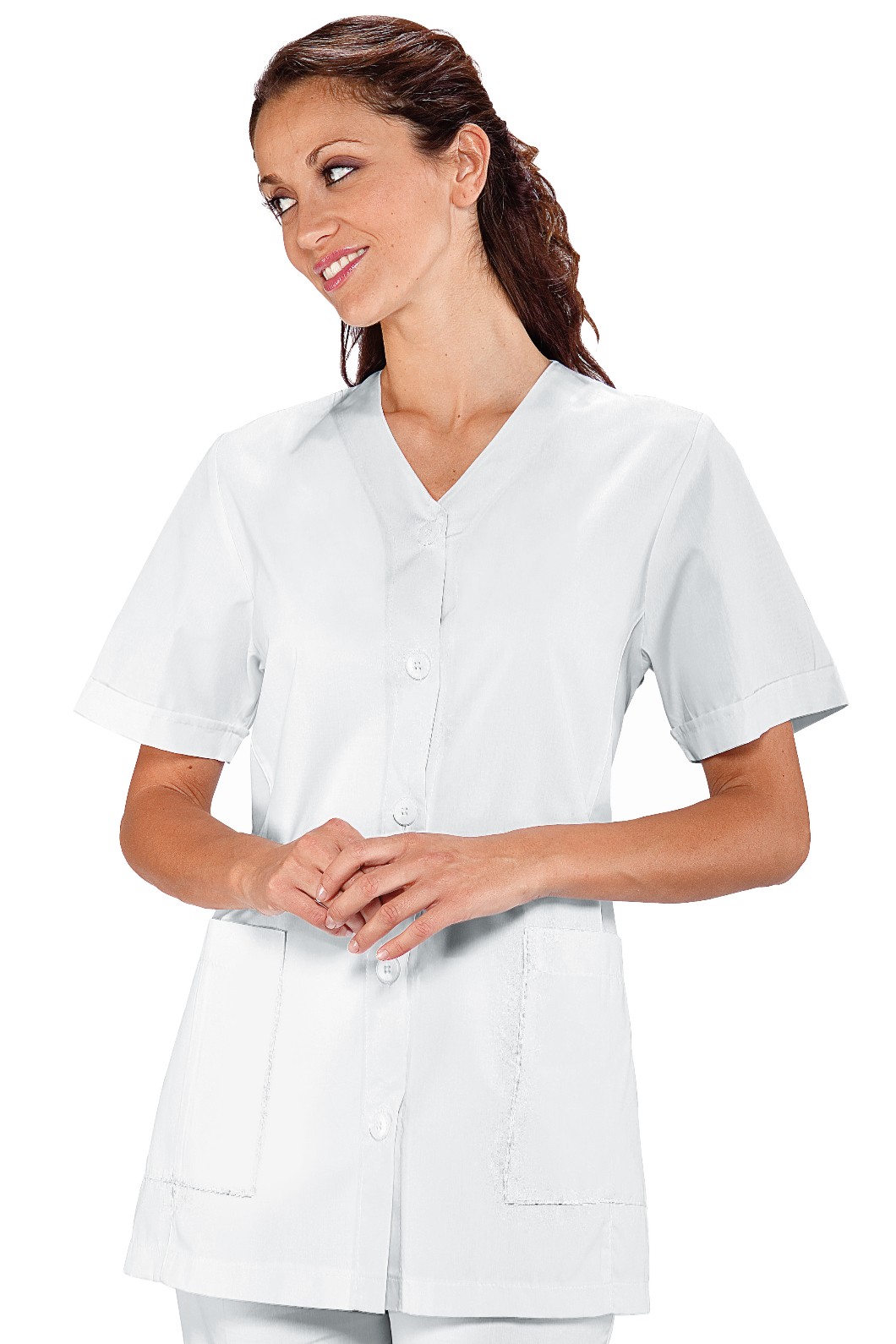 Casacca da Donna a Mezza Manica in Colore Bianco per Divise del Settore Medicale Estetista e Centro Benessere Codice: 014007 Lubecca