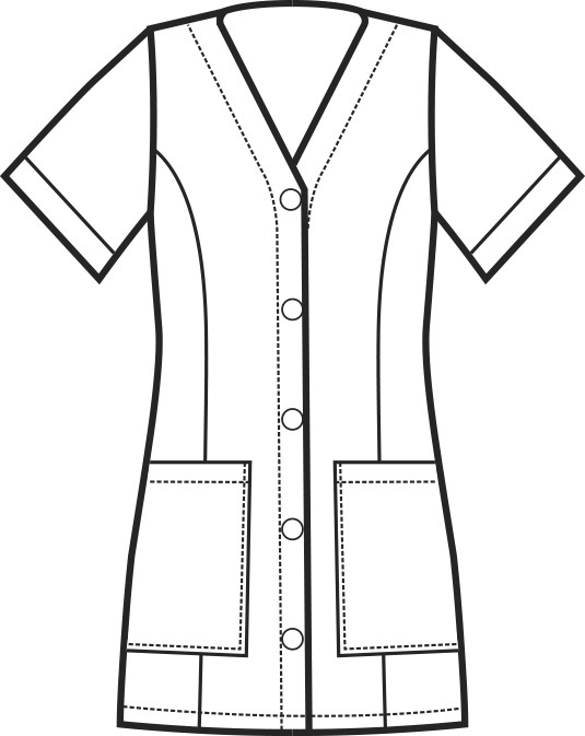 Le mezze maniche contribuiscono a conferire al camice un aspetto moderno e adatto alle esigenze di comfort.