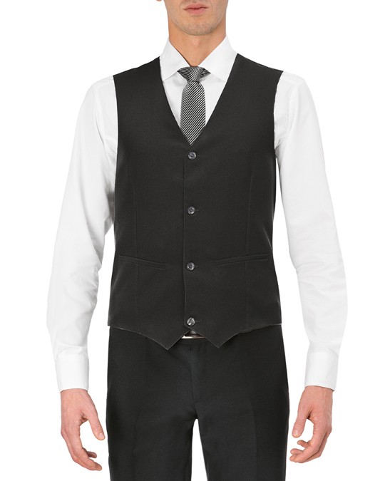 Gilet Miguel Nero Art. Q1EX0158 con abbottonatura frontale con bottoni in tinta, martingala posteriore per una maggiore vestibilità, con due tasche sui fianchi.