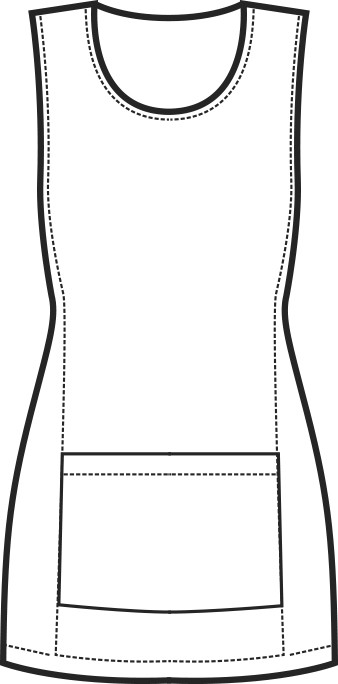 – grembiule leggermente svasato dalla scollatura rotonda appena accennata