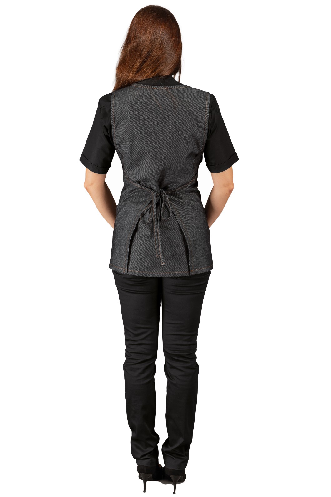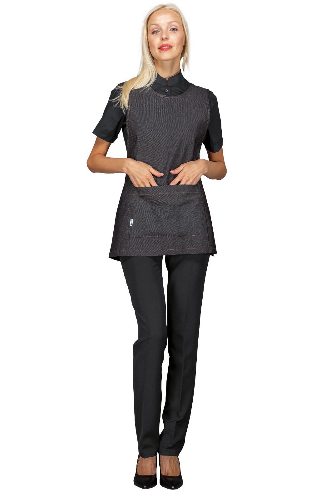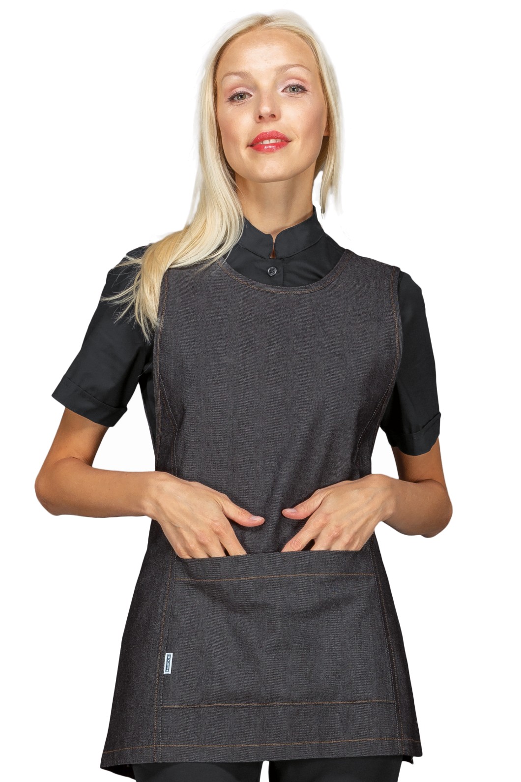 Il grembiule Papeete è un grembiule da donna in black jeans o in Chambray blu jeans. Ottima per settore alimentare, igiene, pulizia, estetico, sanitario. come divisa da lavoro per aziende di servizi, bar, pub, ristoranti. Taglia unica per vestire tutte le taglie, come poncho con lacci per allacciarlo.