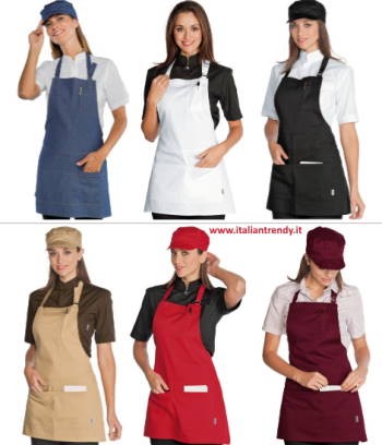 Le numerose varianti di colore e fantasia permettono abbinamenti con cappellini, cravattini e grambiuli di diversa forma e capi della stessa linea, così da pensare ad una completa immagine coordinata per un ambiente lavorativo sempre più attento alle nuove mode.