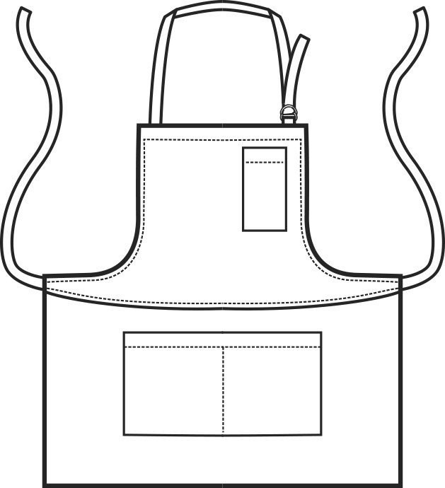 Praticità e funzionalità sono garantite dalle numerose tasche del grembiule. Vi è un taschino porta penna sul petto, utile per avere sempre a portata di mano uno strumento di scrittura, e una comoda tasca frontale divisa in due parti, perfetta per riporre piccoli oggetti di lavoro o utensili necessari durante le attività lavorative.