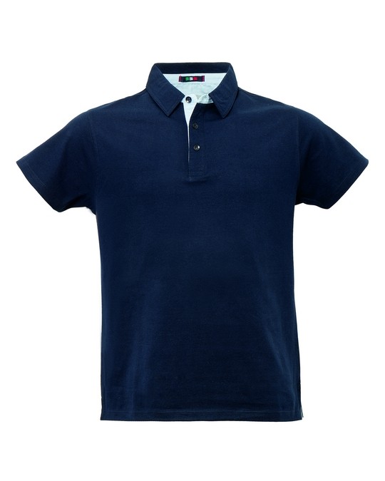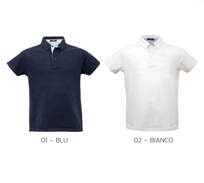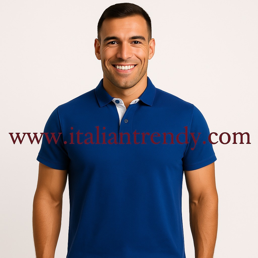 Polo da Uomo a Maniche Corte in un Soffice Cotone in Colore Bianco o Blu scuro con rifiniture Celesti.