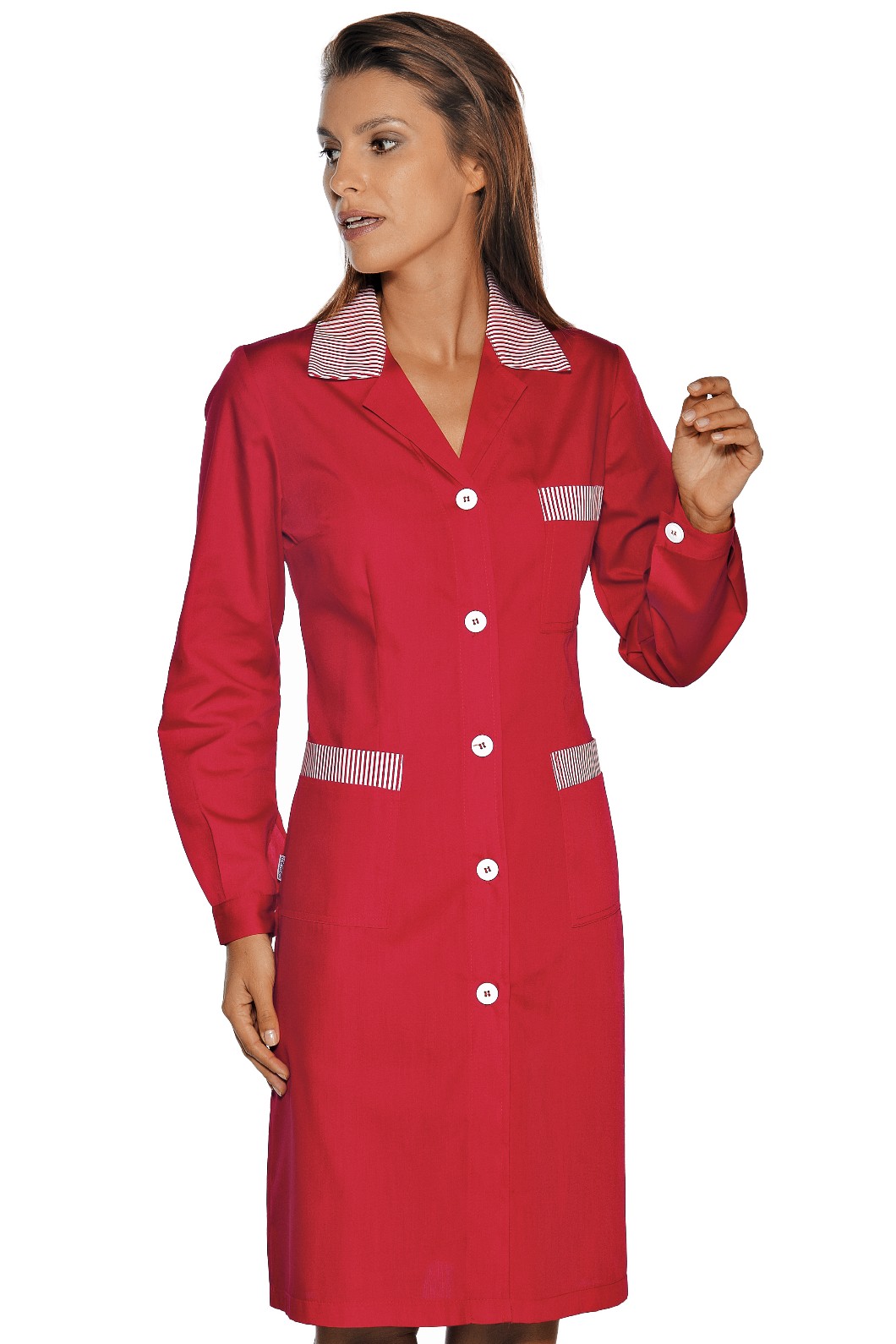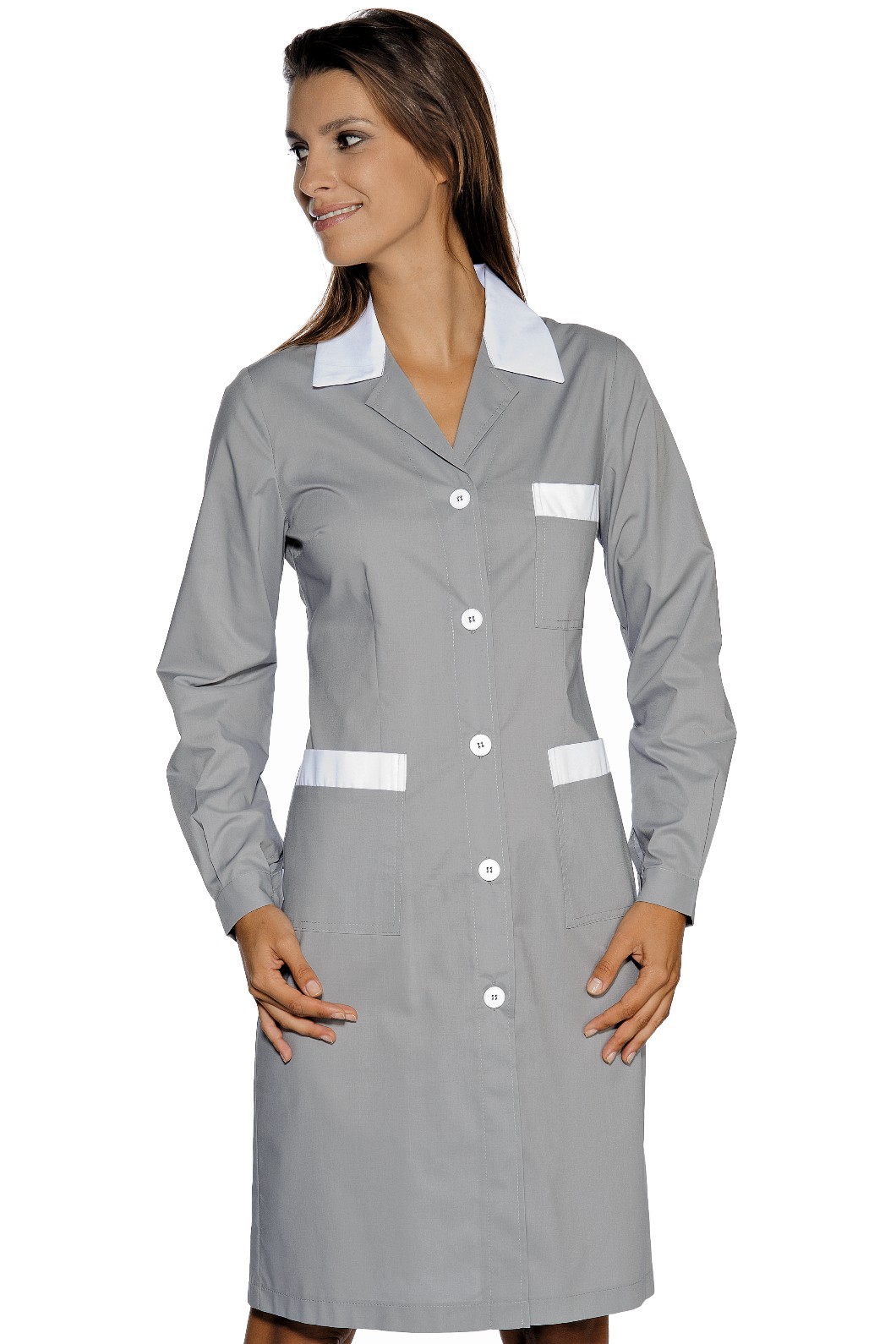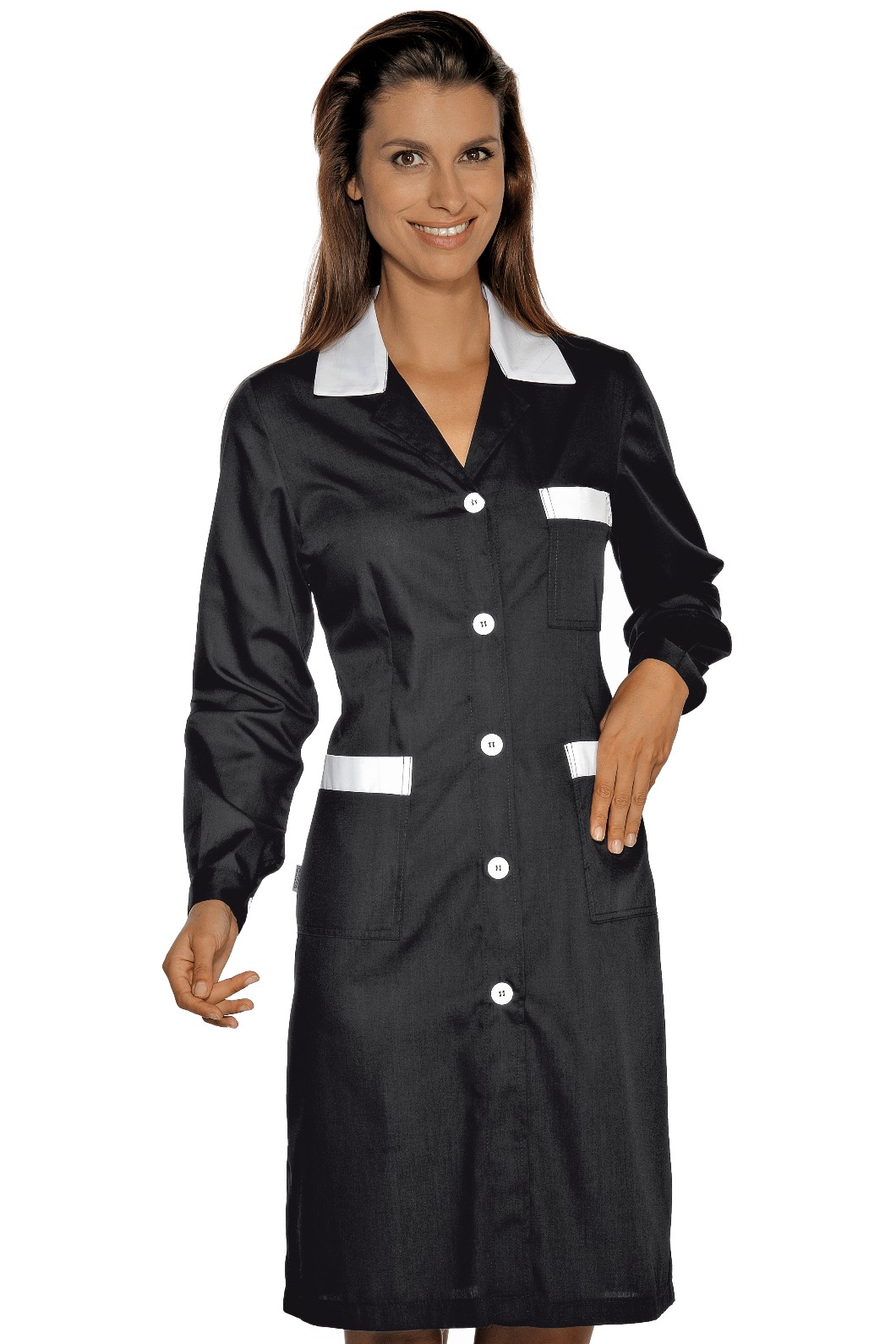 Camice da donna aperto centralmente e con chiusura con bottoni classici in tessuto Leggero e in Bicolore. manica lunga. Per personale di servizio settore alberghiero. Brand Isacco