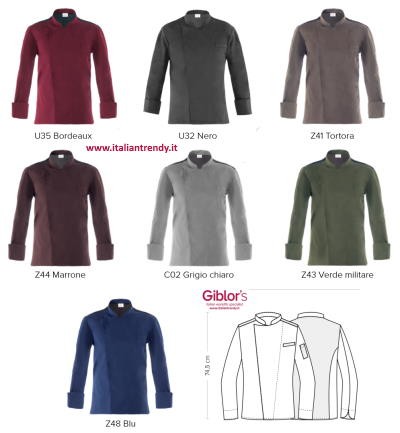 Giacca da cuoco maschile in 8 varianti colorecon bottoni automatici e retina posteriore traspirante. Codice: Raul Q8GX0104 /22P08G322