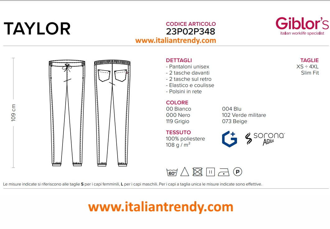 Pantaloni uomo donna con coulisse ed Elastico alla Caviglia art. Taylor Giblor’s Linea Top