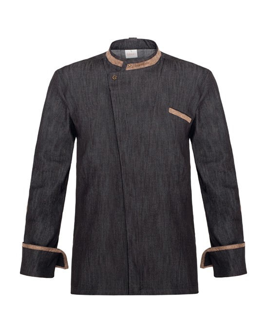 Giacca da Cuoco Ulisse in Stile Denim Nero con Dettagli in Similpelle Comfort Elastico Articolo Q8GX0106 /19P08G098