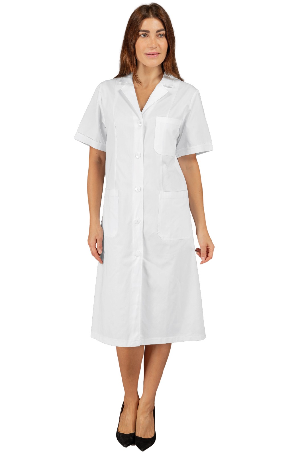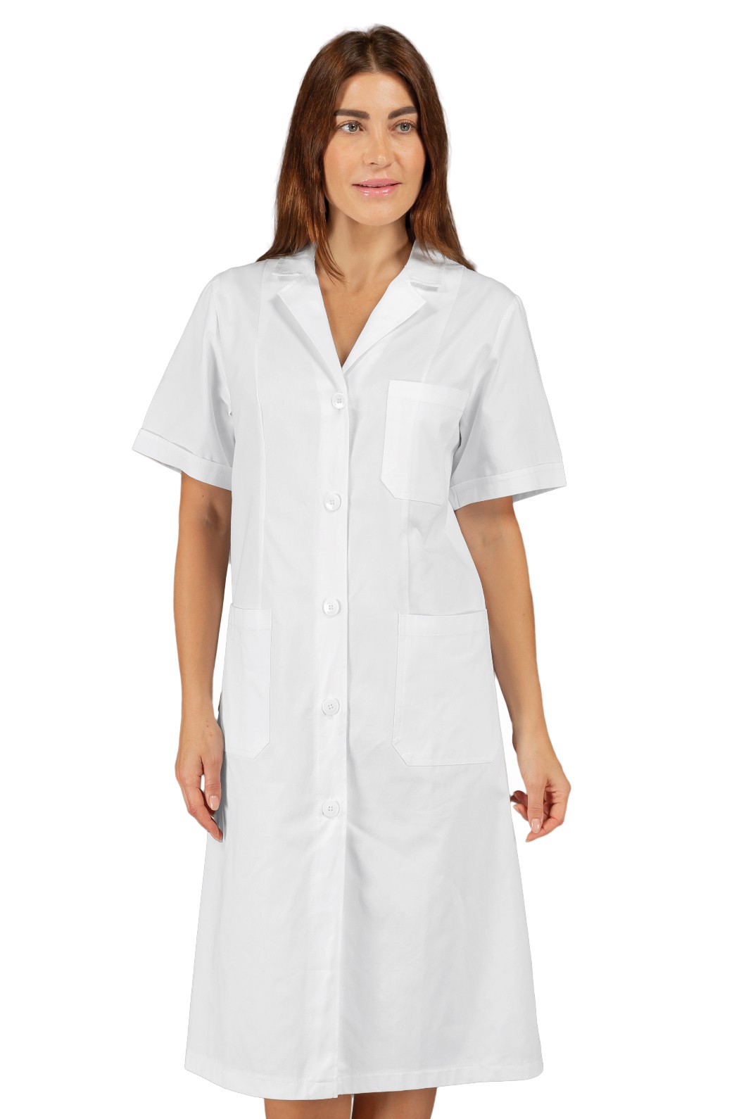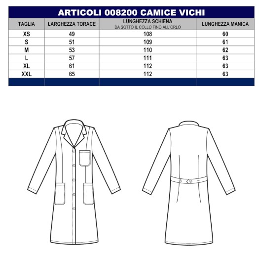 Il camice Vichy è un camice da donna a manica lunga bianco. Per settore medicale, estetico e sanitario. Ideale come divisa da lavoro per medico infermiere dottoressa, farmacista. Tasche e taschino al petto bottoni 4 fori.